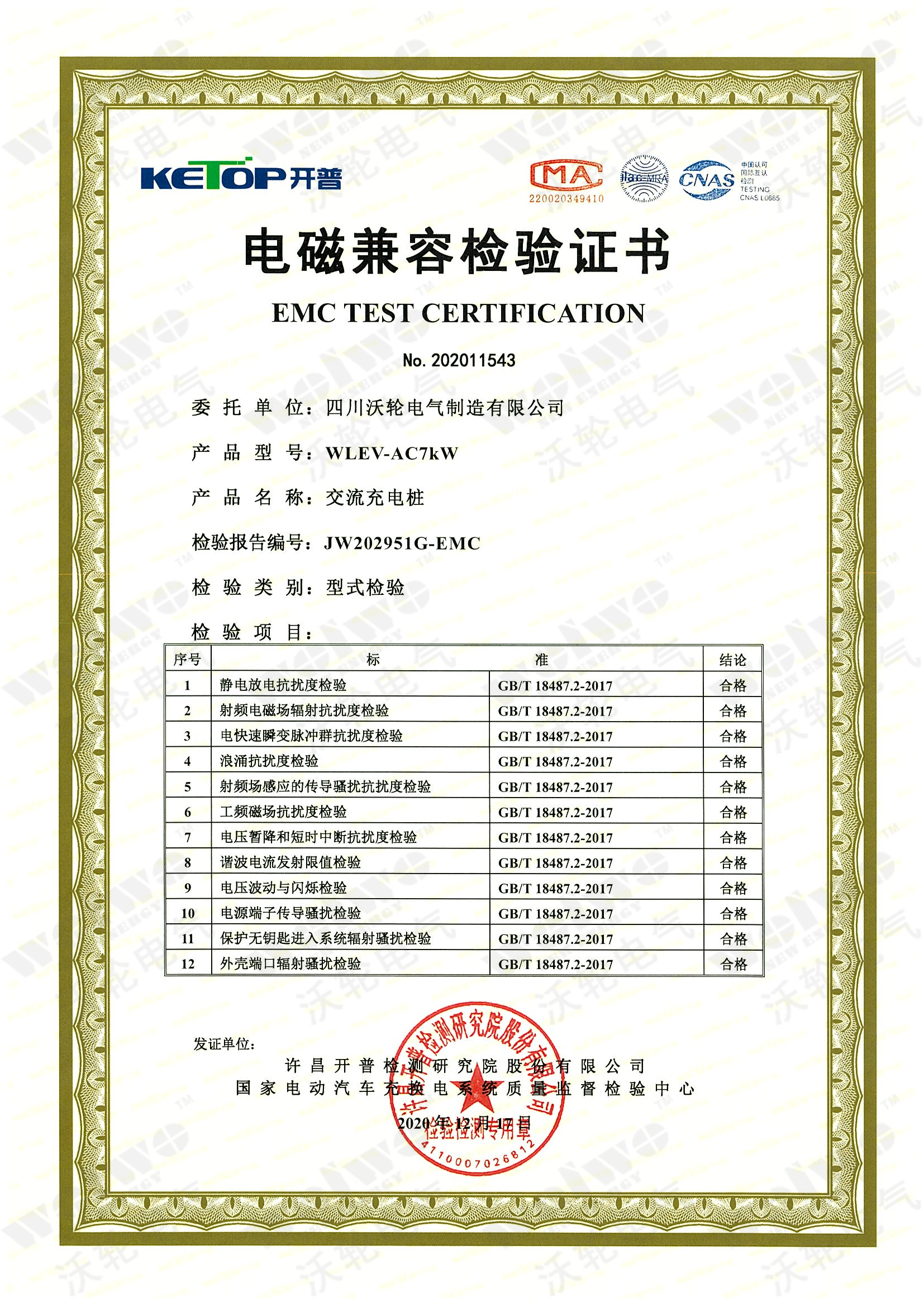 電磁兼容檢驗證書SPEVDC-7KW電動汽車交流充電樁_00